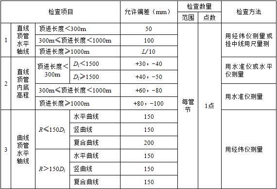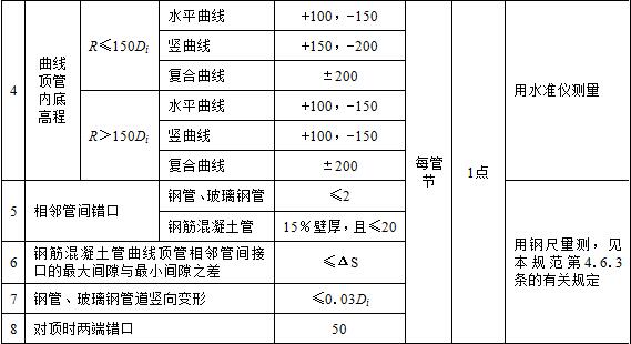 表6.7.3 顶管施工贯通后管道的允许偏差