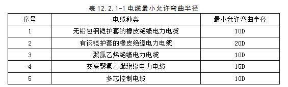 第4.4.3条线缆的最小允许弯曲半径应符合国家标准GB50303-2002中表12.2.1-1的规定。